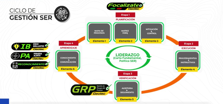 Nuestro sistema integrado de gestión “SER” se encuentra fundado bajo el posicionamiento del Ser Humano como el principal activo de la organización. El SER mantiene los aspectos normativos de Salud, Seguridad, Medio Ambiente/Comunidad y Calidad, de acuerdo a las normas internacionales, integrando sus variables en un sistema compacto, simple y transversal. En Geotec Boyles Bros S.A construimos día a día nuestra cultura SER, y estamos seguros que con el compromiso de todos podremos llegar Más allá de Cero.